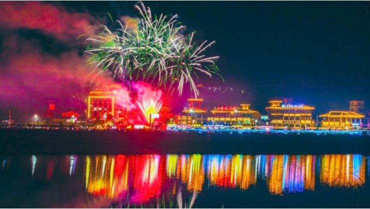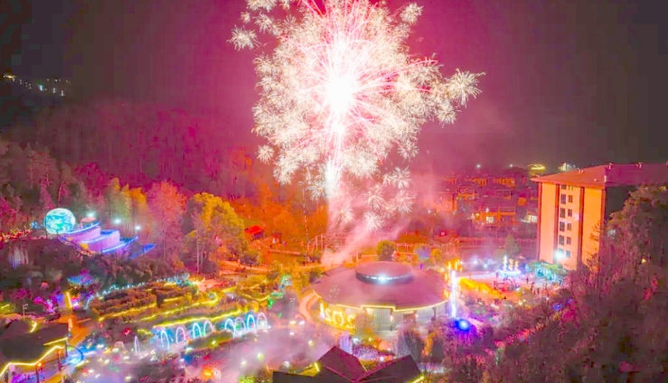 大年初四是春節期間的一個吉祥如意的好日子。煙花升空又一年,愿新年勝舊年。四季花海是英山城區指定煙花燃放地,為歡度新春佳節,英山四季花海游客中心廣場煙花秀表演持續至正月初六,每天晚上的煙花秀表演點燃新春濃濃年味。禮花彈騰空,焰火劃破夜空,綻放異彩,形成壯麗景觀。游客和家人共享此刻,欣賞視覺盛宴。